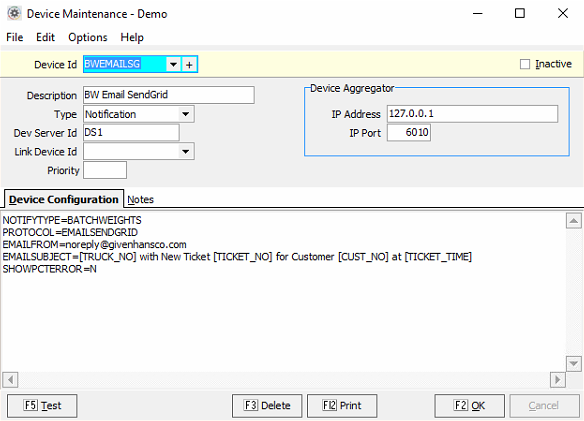 | Notify Batch Weights | Sent when batch weights are received from a batch control | BATCHWEIGHTS | EMAILSENDGRID EMAILSMTP KOBATCHWEIGHTS |